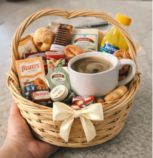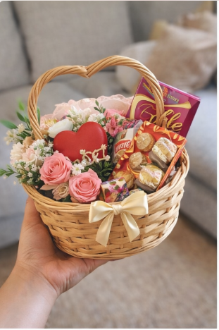 Cesta Mini Romântica com Caneca, Chocolates e Buquê